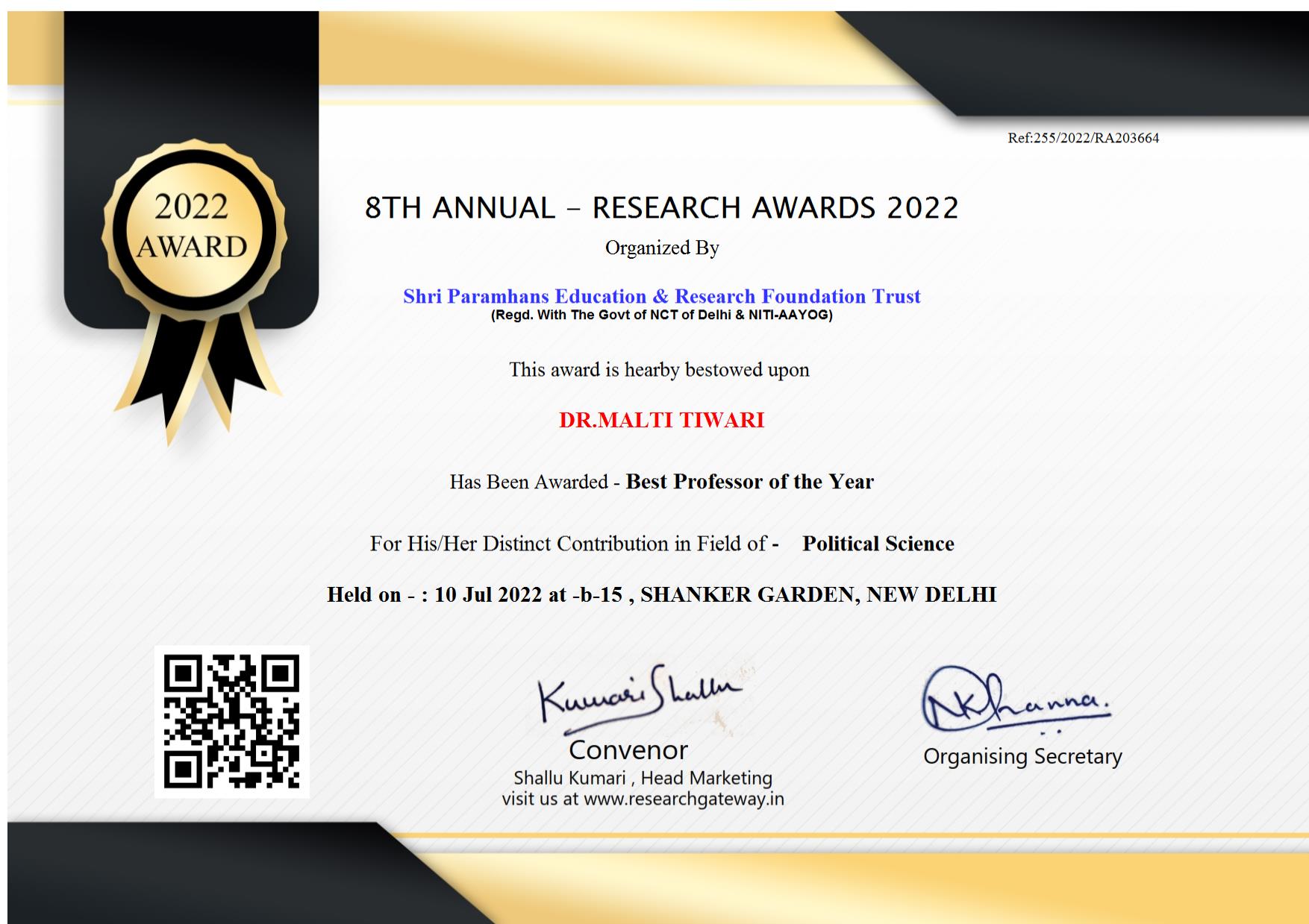 Nominated for: Best Researcher Award (Commerce)