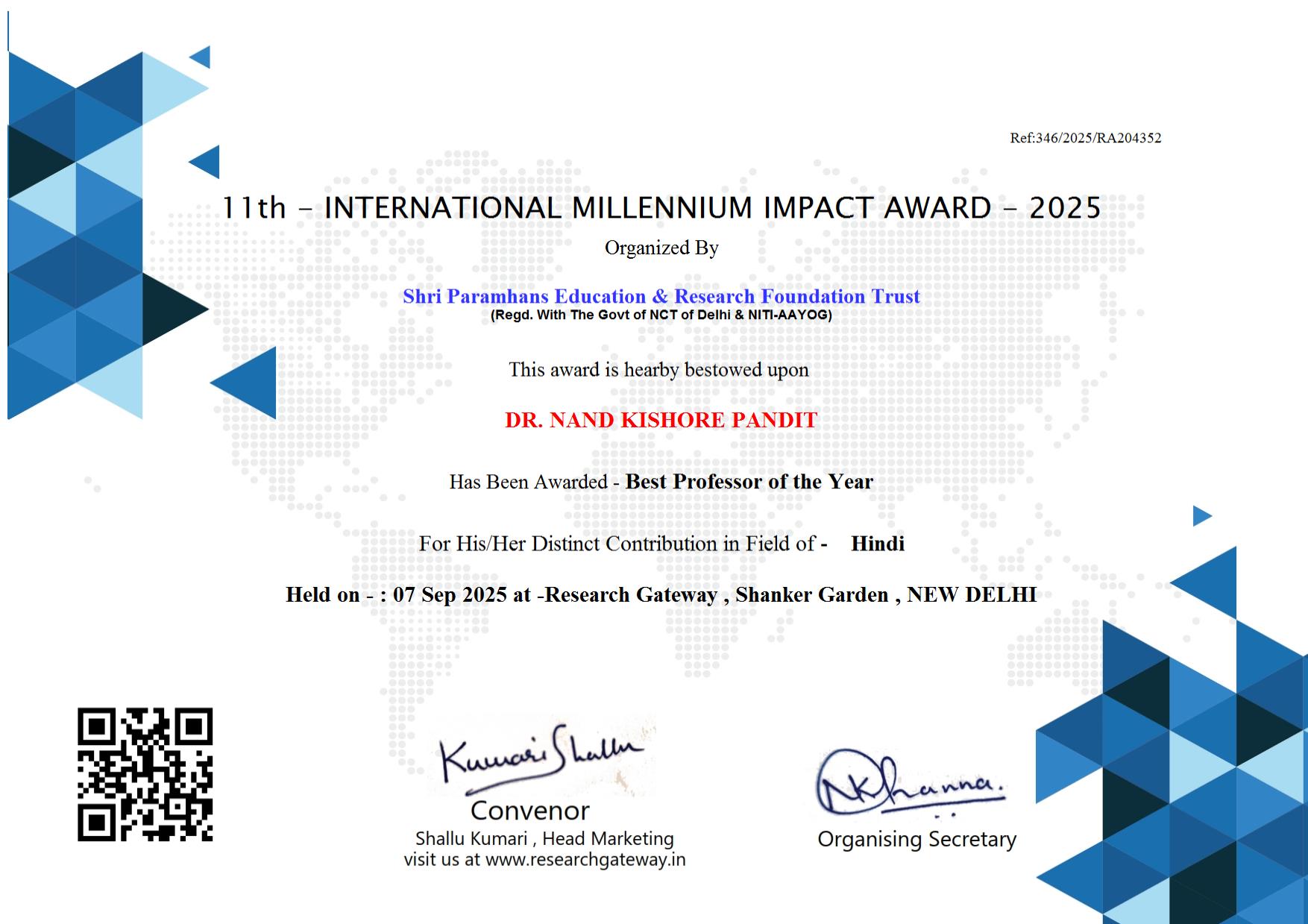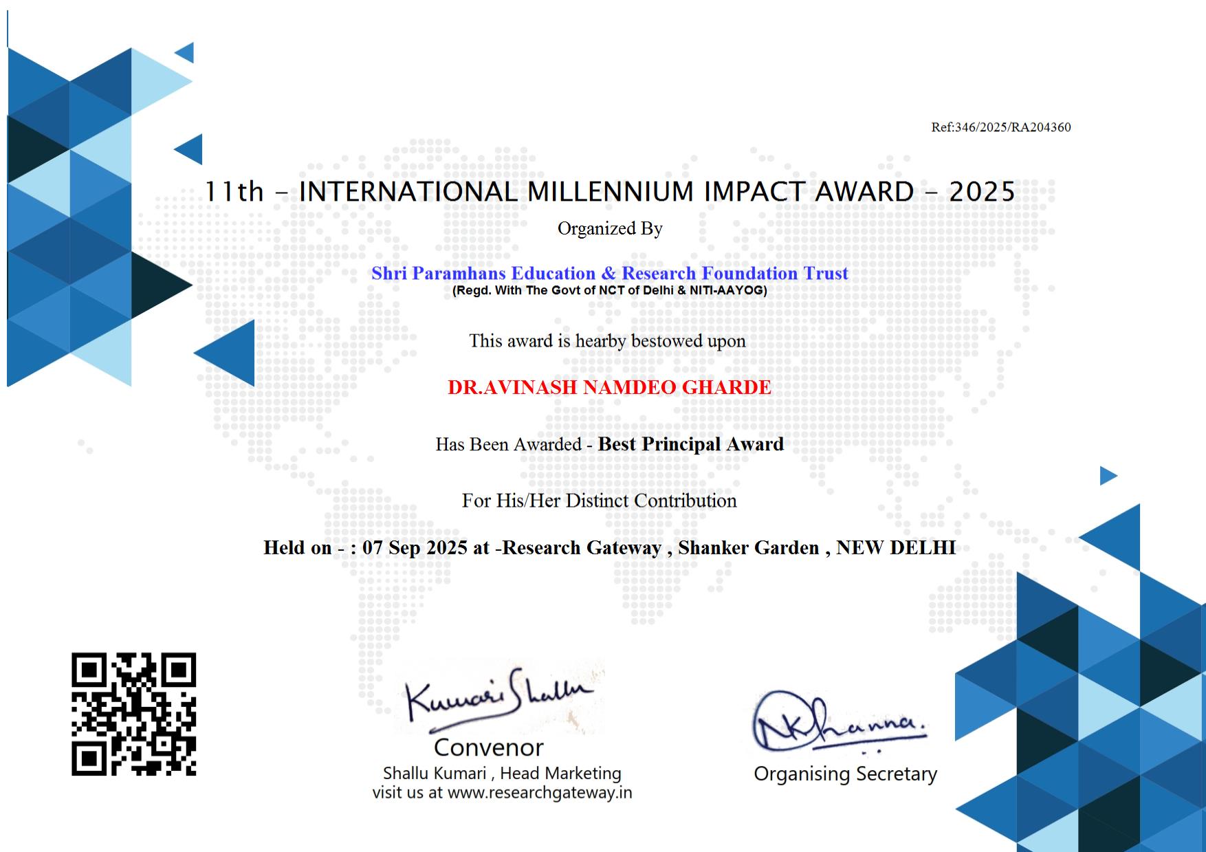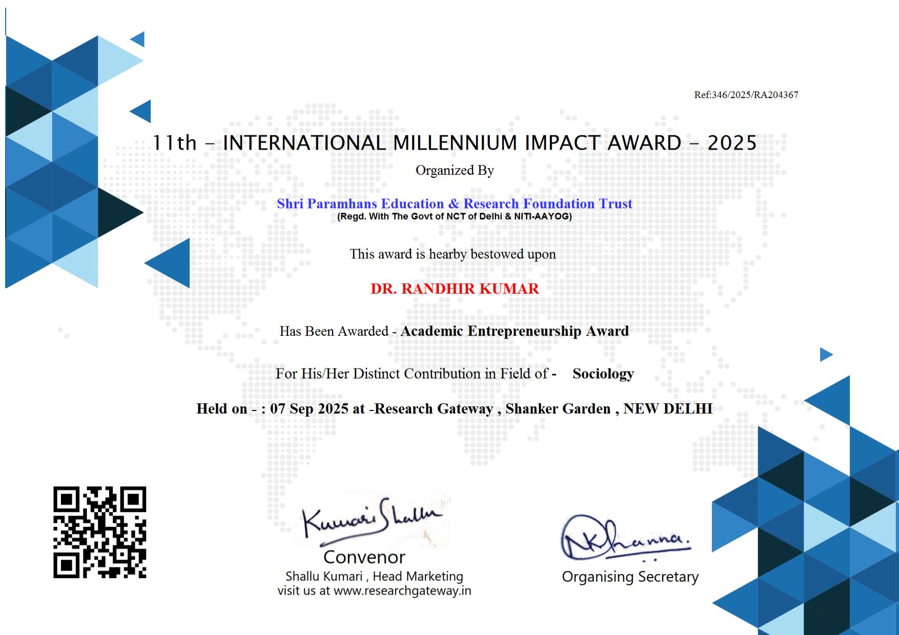The 10th International Millennium Impact Award 2024, organized by SPHERT in association with Research Gateway, recognizes and celebrates outstanding contributions in various fields of research and innovation. This prestigious award honors individuals and organizations that have made significant impacts through groundbreaking research, innovative solutions, and dedicated efforts to drive positive change in society. The event serves as a global platform to acknowledge excellence, foster collaboration, and inspire future advancements that contribute to a sustainable and prosperous world.